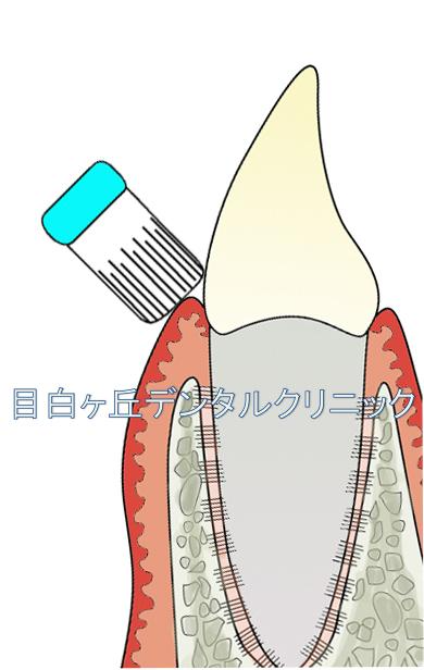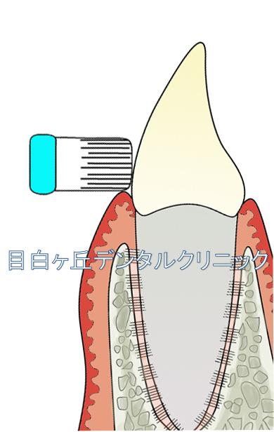歯肉に対して毛先を当てるバス法とは逆に、根っこの方向から歯肉に当てていく方法です。歯肉には歯ブラシの毛先ではなく、歯ブラシの側面を当てるのがコツです。